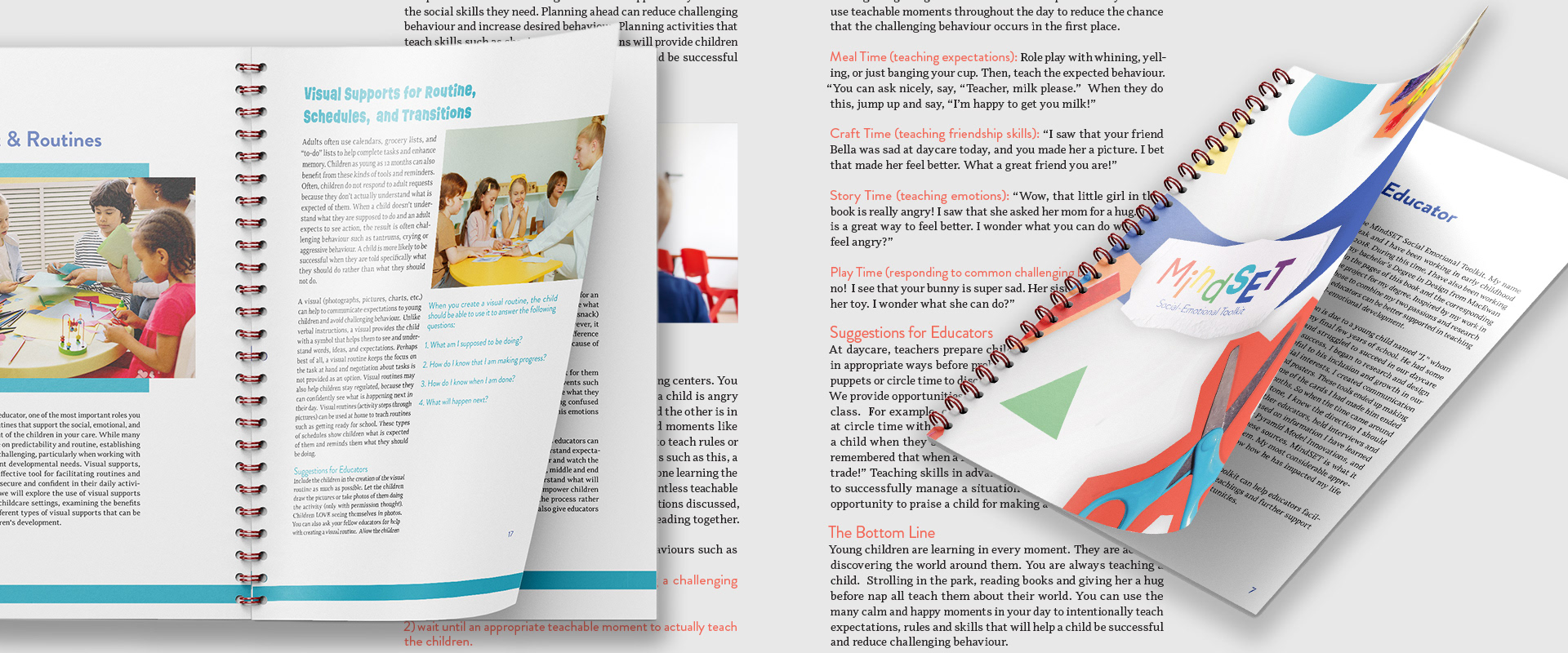 The MindSET Social-Emotional Toolkit is a comprehensive guidebook designed to support early childhood educators in improving inclusion and social-emotional learning in their classrooms. This project was for the capstone class and was built over 2 semesters of research and design. It includes four sections: “We Can,” “I Do,” “I Can,” and “I Feel,” each providing interactive tools and evidence-based strategies for addressing challenging behaviours, developing visual routines, and understanding and labeling emotions.